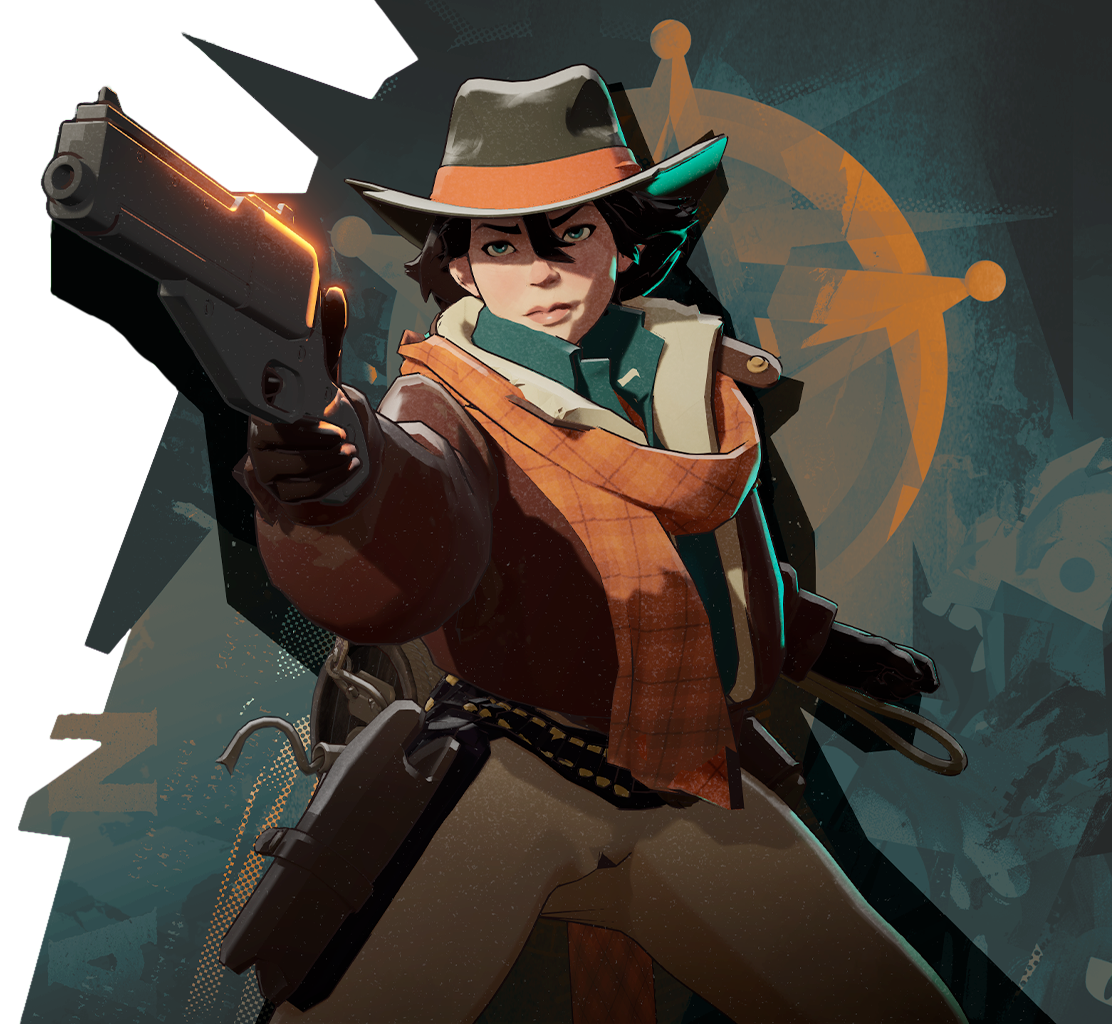 Holliday depends on her skills as a crack shot, shooting things she's bounced into the air. With good aim she can lay out heavy damage. Her movement skills let her isolate her enemies or beat a hasty retreat.