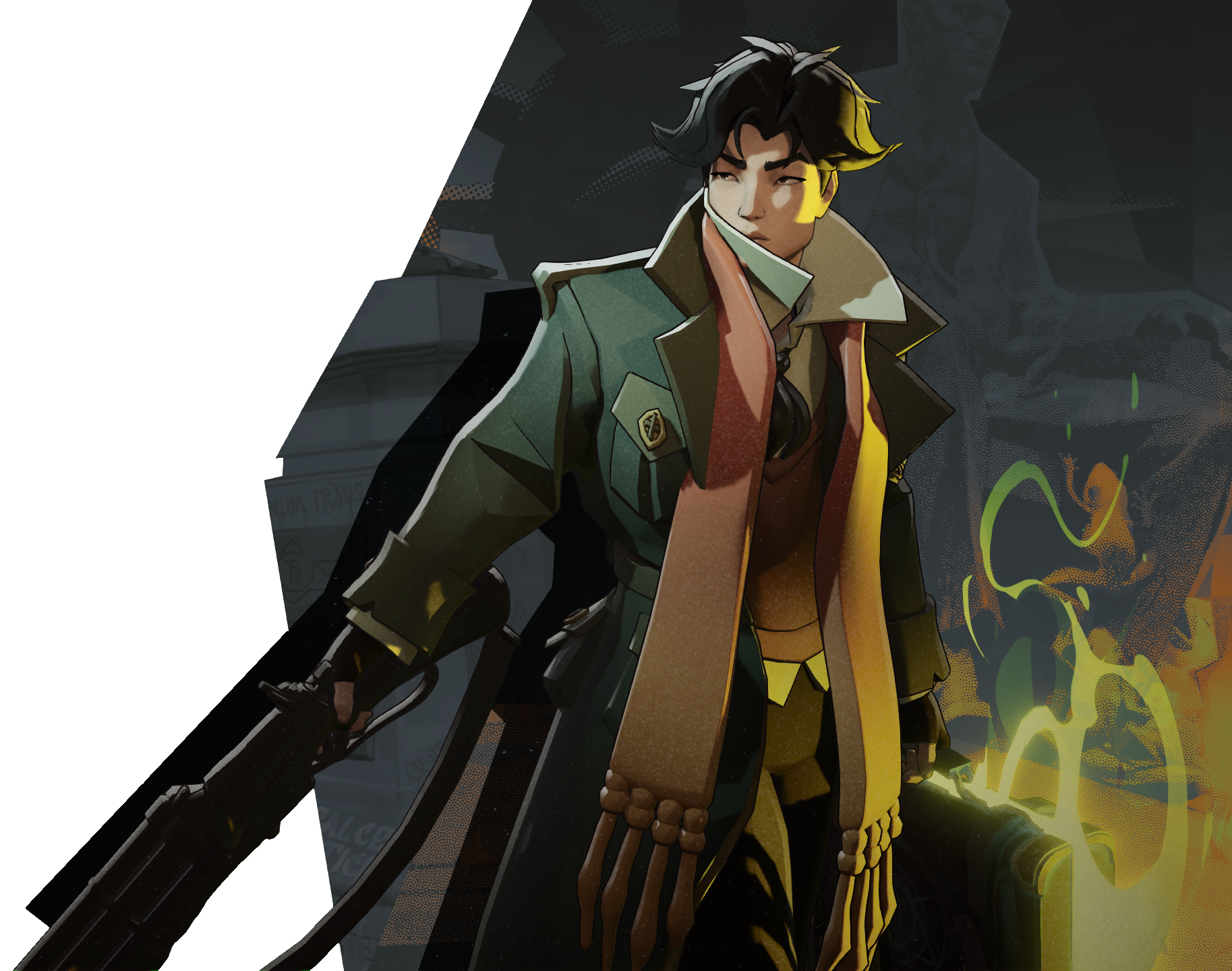 With a powerful shotgun and a thin frame, Pocket relies on their ability to briefly escape into a mystic suitcase and teleport via a flying cloak in order to survive close encounters.